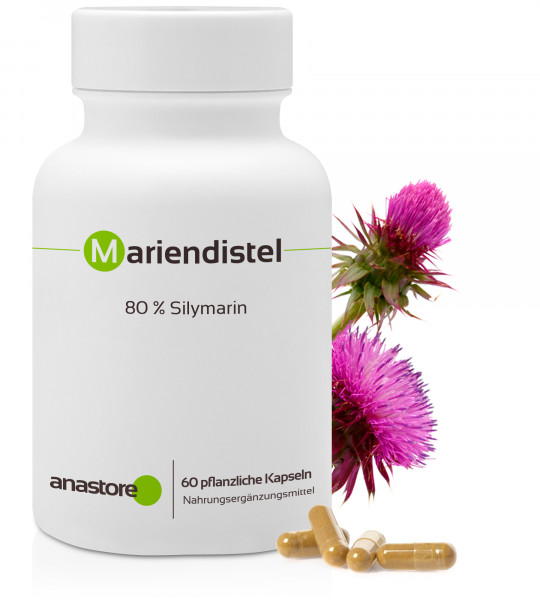 Der Samenextrakt der Mariendistelkapseln von Anastore weist einen Mindestgehalt von 80% Silymarin und 30% Silibinin auf.